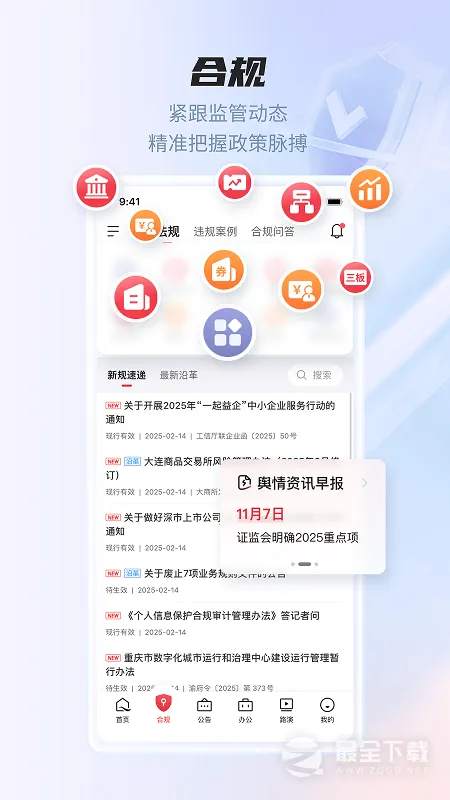 可随时依据个人实际情况查询交易合规状态,还能在移动设备上随时查看证券市场相关法规。