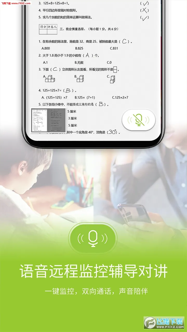2. 提供亲子辅导,实现作业亲子陪伴,具备高清图像传输以及清晰流畅的双向语音沟通,可在线答疑和搜题。