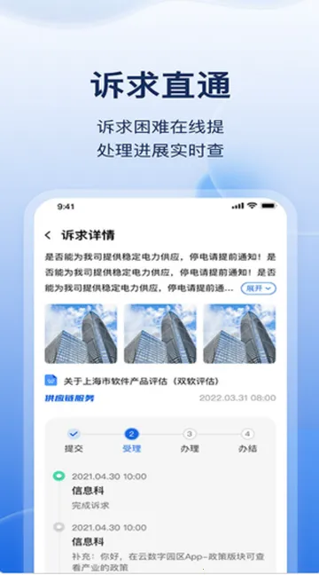 2. 园区服务可一键在线受理,处理进展能实时查询,园区事项能实时办理,让企业办事更高效。