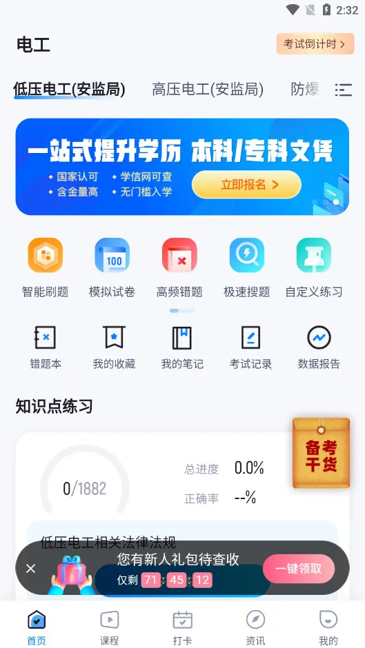 2. 具备多种刷题模式,如模拟考场、历年真题练习、每日一练、快速练习、考点练习、考试押题等,满足不同学习需求,让用户全面系统准备考试。