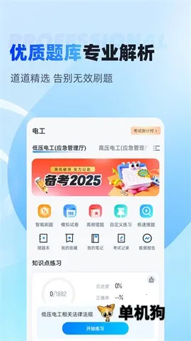 电工考试聚题库是一款为电工考证打造的备考应用,涵盖低压、高压电工等多领域题库。有模拟考场、交流中心等功能,提供多种刷题模式,搜题方便,试题优质,能助力电工师傅高效备考,符合全国通用考试标准。