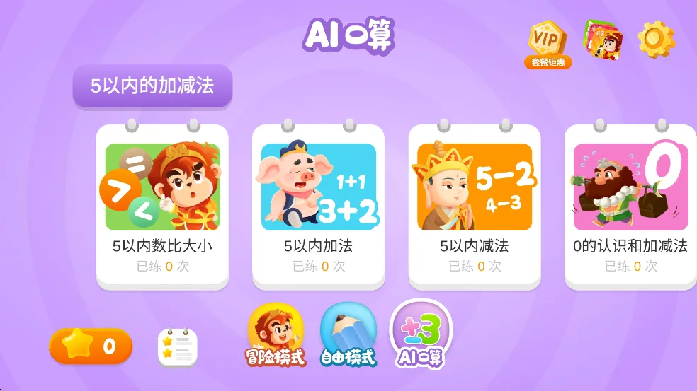 悟空数学是一款专为3-6岁儿童设计的数学启蒙软件。它以西游记为背景,把数学知识融入趣味游戏和动画中,让孩子轻松学数学。软件功能强大,涵盖空间认知、时间概念、分类排序等关键数学思维能力。通过24个精心设计的学习单元,分三个阶段循序渐进地引导孩子学习。阶段一培养基础认知,如数字1-10的认识等;阶段二拓展思维,增加时间概念等内容;阶段三提升逻辑能力,涵盖均分概念等复杂内容。其特色在于将数学知识与游戏巧妙结合,孩子感受不到学习压力,还能提升思维、判断和理解能力。软件界面清新可爱,采用小游戏设计,激发孩子兴趣。还包含测试模块,能针对性训练。而且支持电脑、手机、平板和电视多平台使用,同一账号学习进度同步。有了悟空数学,孩子在家就能快乐学数学,家长省心又放心。关于价格,目前有全课程免费版,无需登录账号就能免费学习全部课程。
