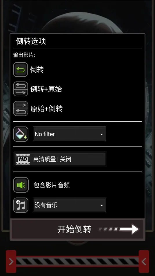 这款视频编辑工具主打视频倒放,操作简单易上手。它支持直接拍摄新视频,也能导入本地主流格式素材,自由截取片段倒放。其核心功能一键生成高清倒放视频,效果很是神奇。比如能看到人们倒着走、朋友吐出橙汁、倒着说话等。可给最终结果添加音乐和原始视频,还有添加音乐、倒转原始等倒转选项。软件保证高清画质输出,让分享到社交平台的内容既独特又精美。用户完成设定后点击开始,就能轻松制作出趣味十足的倒放视频,无论是初次接触视频编辑的新手,还是普通视频爱好者,都能在此找到乐趣,快速制作出想要的独特视频作品。