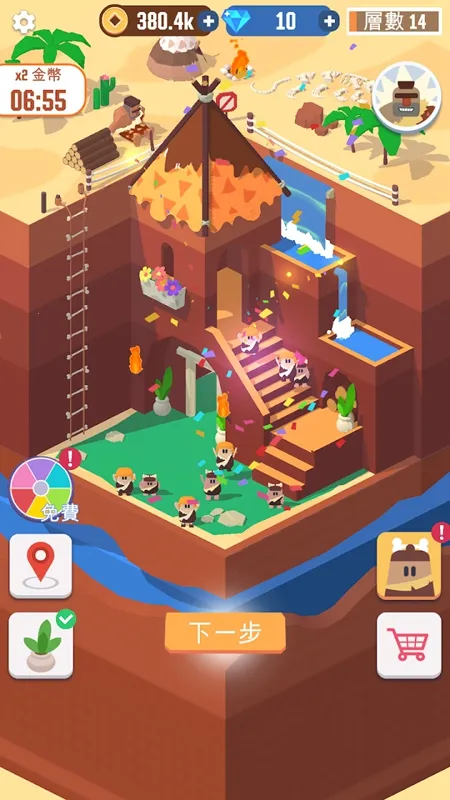 拥有丰富的游戏场景,像峡谷、霜冻之地、雨林、樱花、沙漠等,不同场景对应不同建筑和可发掘宝藏,还能装饰建筑。
