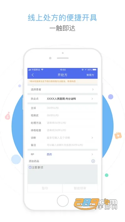 线上处方功能,能便捷开局,为医疗工作提供便利。
