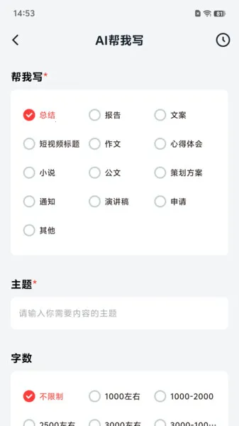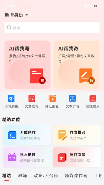下载安装软件后打开,同意相关协议政策,进入平台首页就能看到各种写作工具方便点击使用。其优势显著,能自由改写润色文章、续写并降低重复率,还能在私人助理中查询百科知识,借助自带AI开启万能创作。输入不同主题可快速生成文章内容,有很多写作模板供挑选模仿写作,开启高情商回复助力人际交往。总的来说,是一款实用的写作辅助工具。