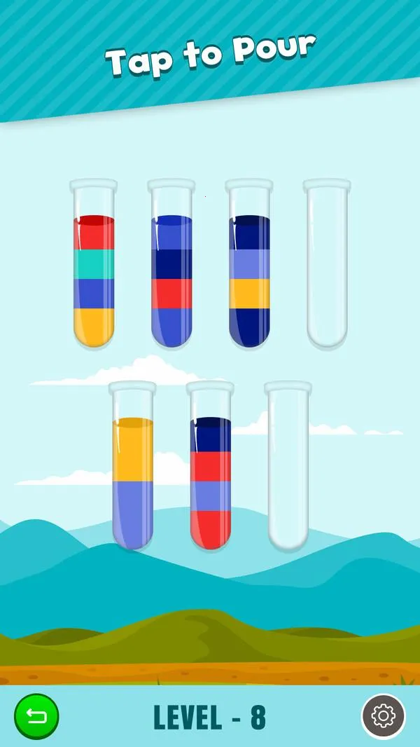 操作简单易上手,能让玩家轻松控制水瓶倒入液体,变换出不同颜色,享受趣味操作过程。