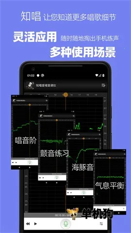 知唱音域音调仪是一款专为唱歌人士打造的实用工具。它的易用性极高,就算没接触过乐器、没学过音乐理论知识的人,对着手机麦克风哼唱,就能自动识别分析音高、音调及演唱准确性,大大降低使用门槛。其直观性也很出色,歌唱音调曲线的横轴和纵轴,能清晰呈现对应时间点的音高与音名关系,通过滚动、缩放可查看全局和细节。实时性更是一大亮点,实时接收音频信号,将人声频率与音名对应,以音调曲线展示在屏幕上,便于实时调整发声状态。不仅如此,它还具备灵活性,能测试音准、找换声点等,可存档回看练声记录。对于各阶段、各唱法的唱歌爱好者来说,都是提升歌唱技巧的得力助手。