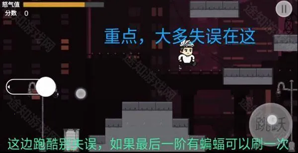 3、这边跑酷别失误,如果最后一阶有蝙幅可以刷一次。