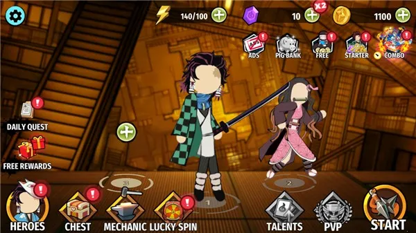 这是一款以鬼灭之刃为灵感的火柴人动作格斗游戏。游戏将原作角色以简约火柴人形象重塑,融合流畅动作设计与热血战斗系统,带来别具一格的体验。玩家化身炭治郎等角色,手持日轮刀与恶鬼对决,守护人类世界和平。通过战斗获取资源强化角色能力。