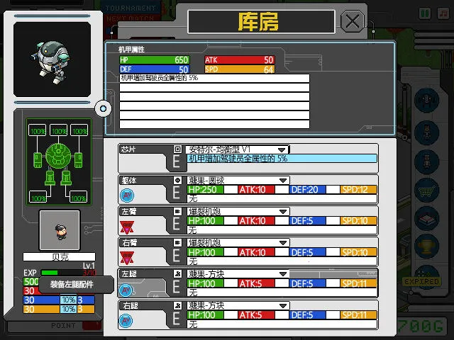4. 驾驶员系统可雇佣并升级驾驶员,提升机甲属性如攻击力、防御力与其他战斗加成。