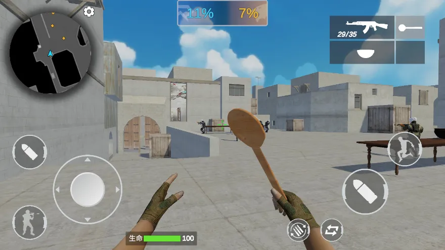 2、丰富武器选择:武器种类繁多且别具一格,不是常规枪支,而是如饭碗、米勺、剪刀、吹风机等,为战斗增添新奇感。