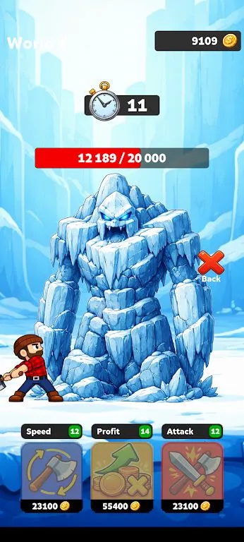 3. 首领战与新区域:随时挑战强大首领,用点击机制击败他们可解锁新区域,木材价值更高,区域越高收益越丰厚。