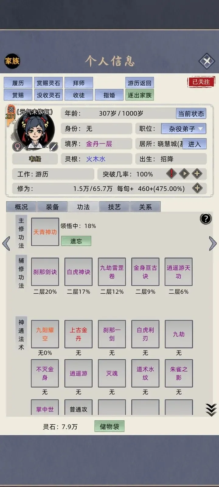 这款修仙家族模拟器有着丰富的玩法和设定。玩家能扮演家族老祖,创建家族并设定十八代族谱,体验家族成长的乐趣。血脉设定多样,为游戏增添了不少特色。