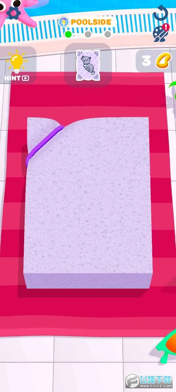 海绵艺术是一款休闲解压的模拟闯关手游。其画面采用3D卡通设计,色彩搭配简单,用橡皮筋捆绑海绵呈现立体效果,带来真实体验。游戏玩法简单,根据关卡规定图案挤压海绵成艺术品造型,随着关卡升级,造型更复杂,玩家可自由发挥想象力。这里没有限制,各年龄段玩家都适合。游戏中工具免费,任务多样,能对创作图案配色。操作时,按提示滑动改变海绵形状,各级别有提示帮助,还有多种颜色可选。整个游戏过程特别解压,看着海绵变成可爱造型很治愈,喜欢手工或想放松的玩家会爱上这种创意玩法。