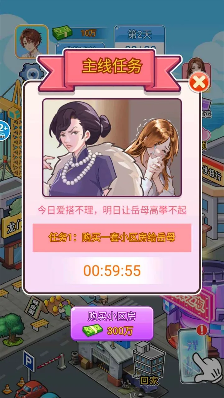 《破产逆袭记》带你体验别样人生。你将扮演曾是富二代,现家族企业破产的角色,在困境中逆袭。**通过完成任务参与创业**,逐步提高资金收益。成立公司形成产业链,解锁多类型副业,带来更多惊喜。召集精英员工与高手投资者,解决难题创造收益。游戏能让你根据市场战略灵活操作,发挥才智。丰富的故事任务不断提升,助公司扩大规模,更有优质生活等你创造,快来加入这场充满挑战的冒险,开启你的逆袭之旅!