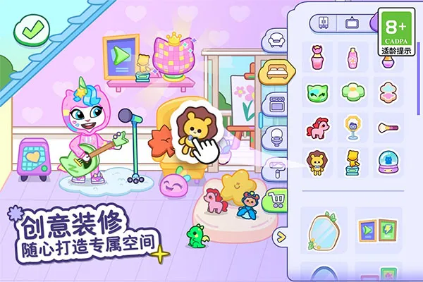 自由创造角色:可从大量选项中选择,用喜欢的颜色、服装和发型表达创造力,还能创建全新角色并放置在场景内,设计专属小房间。