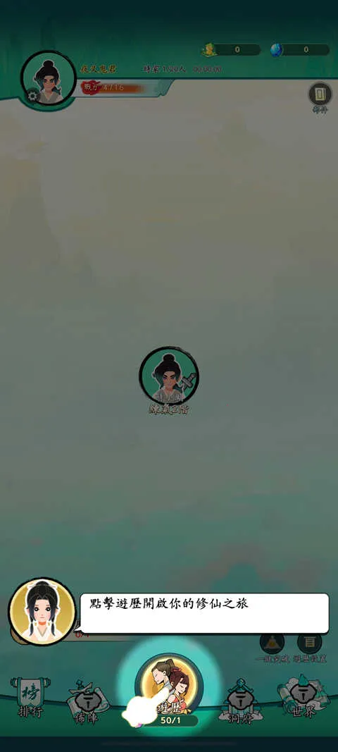 3、进入游戏会有个新手教程,跟随引导操作,点击游历;