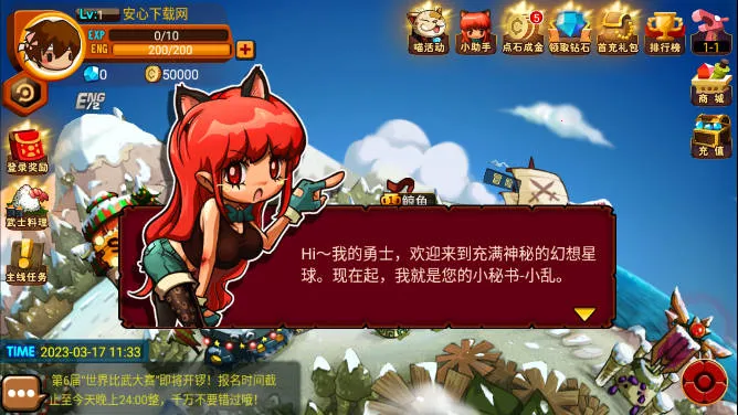 2. 多样养成系统:有商城可购礼包,还有排行榜、登录奖励、主线任务等。能强化装备、洗练词条、添加宝石,还有宠物系统助力战斗。