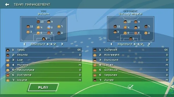 采用经典怀旧的街机像素美术风格,视觉表现简洁明快,球场环境细节设计细腻,有助于制定战术。