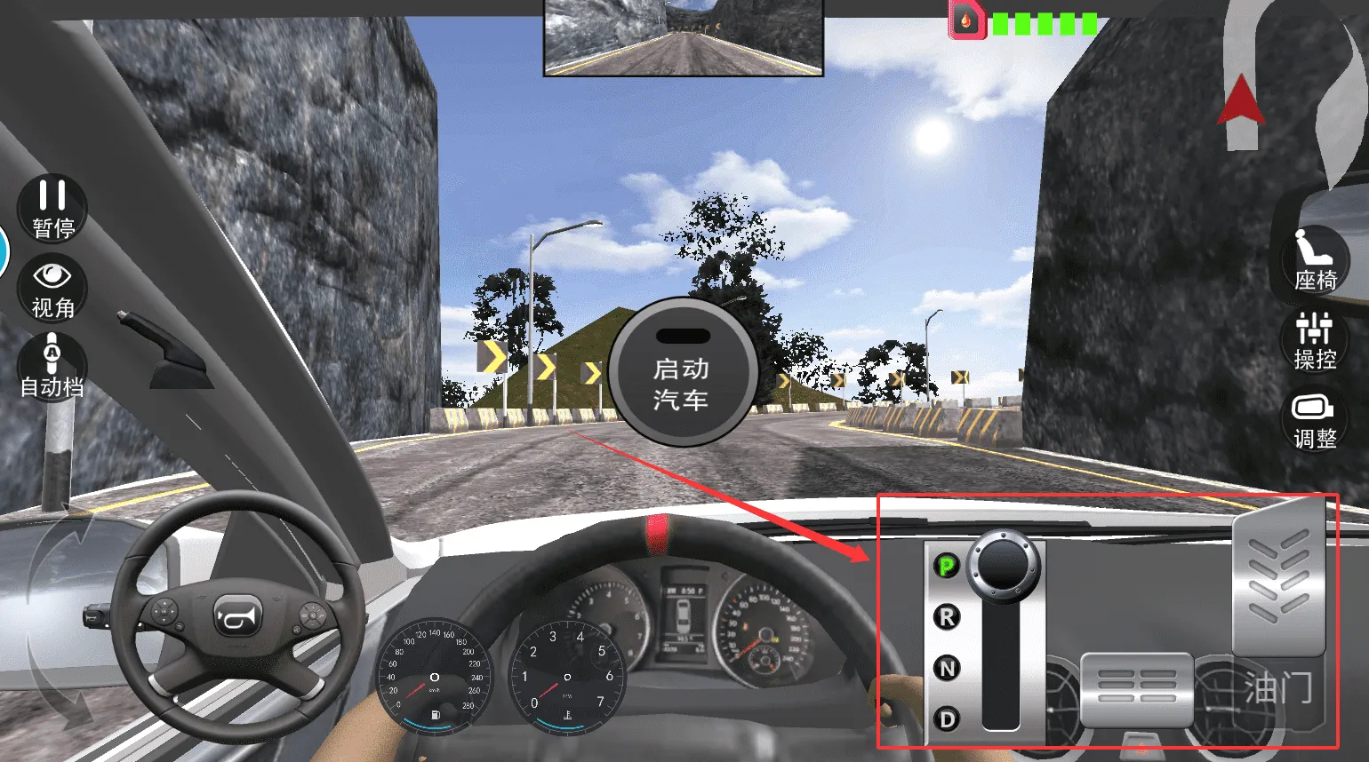 3、在驾驶舱内首要动作是扣好安全带以保障虚拟行车安全,随后进行点火启动车辆引擎,仔细听辨发动机的模拟声响。