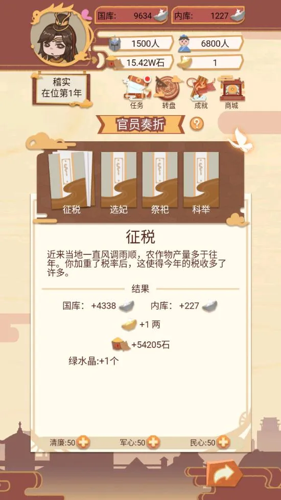 精致画风,真实体验:精致笔触勾勒东方古风,绚丽特效与恢弘场景构建古典时空,让玩家真切感受古代生活细节与千年文化风情。原创剧情,超强代入:以新任官员身份踏入仕途,从高中状元开始,在官场风云中抉择,招贤纳士或审时度势,体验步步为营的乐趣。美人坐怀,娶妻纳妾:汇聚各具风情的红颜知己,各类佳人任你结识缔结良缘。招贤纳士,广开门庭:打破传统枯燥模式,步入权谋智斗的官场世界,通过剧情关卡与玩家交锋,尽享运筹帷幄之乐。