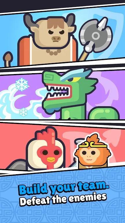 可解锁与中国十二生肖对应的英雄,每个英雄都有独特天赋,如火焰治疗和范围技能,组建队伍策略丰富。