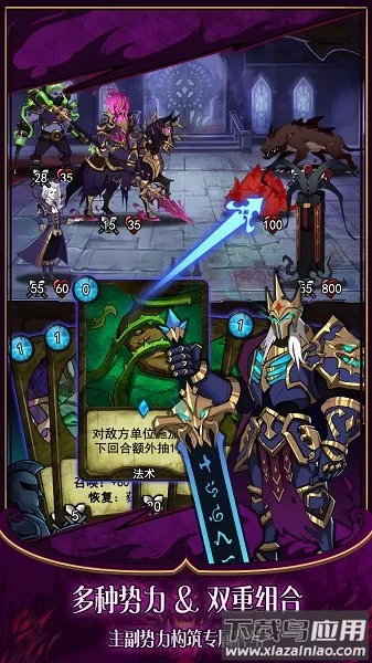 丰富卡牌自由搭配:游戏拥有数百张特色卡牌,九大势力逐步解锁,主副势力可自由搭配,能组合出各种不同玩法的流派,带来多样战斗体验。