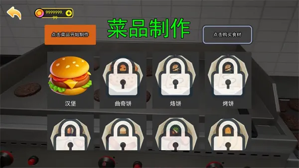 游戏过程从选购食材到烹饪全靠自己完成,给予玩家充分的自主操作体验,感受经营汉堡店的全过程。