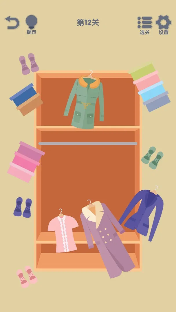 这款游戏能满足你想要把东西整理得井井有条的需求。它采用卡通手绘风格,画面简洁,音乐轻松优美,让你在游玩时感觉特别舒适。关卡多样,难度逐步提升,增加了挑战性和趣味性。每关还有小提示,要是实在过不去,能帮你轻松通关。