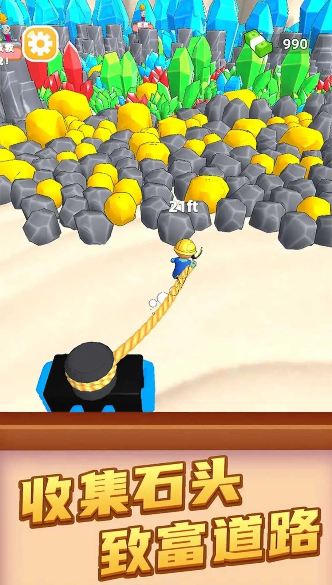 这是一款休闲模拟经营类游戏,采用流行的低模风图案风格,画面清新唯美,人物场景卡通细腻,还有轻快的背景音效,带来舒适体验。玩法操作简单,目标是在矿石丛林中通过双绳牵引搬砖收集石头致富。能自由掌握多种资源,利用钞票收益解锁装备道具,完成隐藏挖矿操作。有海量丰富的关卡挑战,多达400个关卡,多种变换场景,带来不一样的冒险与挑战快感。可解锁不同矿石,建造自己的矿产赢取更高收益。游戏中还有各种道具助力,玩法多样,难度随游戏进程增加,趣味性十足,能让人充分感受独特的挖矿冒险乐趣。