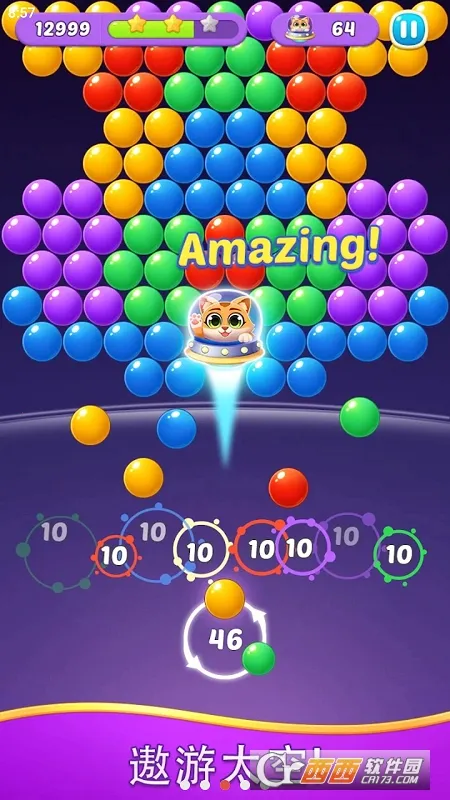 宝石泡泡龙2026最新版本是经典休闲益智消除手游,融合宝石与泡泡龙玩法。玩家助猫咪探索宇宙,瞄准射击消除同色泡泡,收集宝石。规则简单,音效动感,超5000关卡持续更新,操作易上手,老少皆宜。