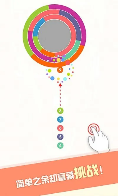 游戏玩法简单却极具挑战性,在旋转摩天轮中插小球,很考验玩家眼力和手速,越往后难度越大,让人欲罢不能。