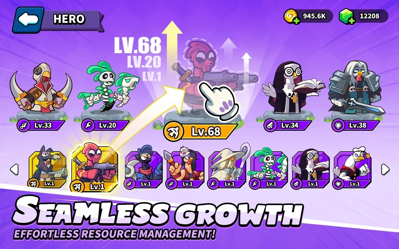 1. 丰富英雄选择:超过30个传说中的鸡英雄,每只鸡都有专属技能,能释放终极招式击败怪物拯救农场,玩家可建立自己的传奇,成为史诗英雄。