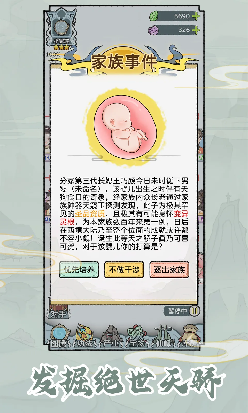 3. 家族血脉培养:家族血脉是核心命脉,可干预婚姻匹配,优化基因组合,助力诞生强者。