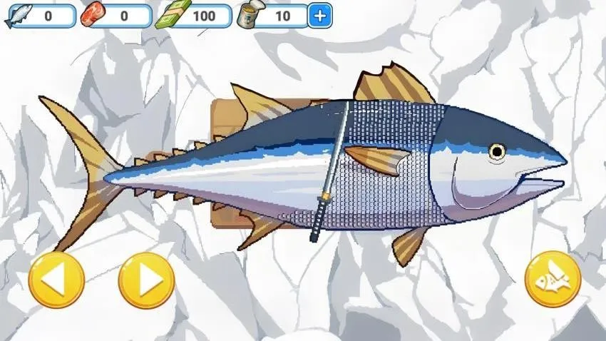 1、如图所示,在游戏界面拿起刀具就可以开始左右移动,可以启动去除鱼鳞