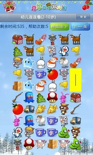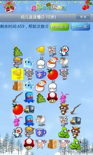 幼儿连连看小游戏画风唯美,有经典灰太狼角色,操作简单。玩家点击相同图片即可消除,还有优雅音乐。能锻炼幼儿观察与动手能力,重温童年记忆,快来 2265 安卓网下载体验。