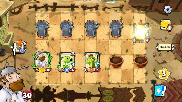 想知道植物大战僵尸卡牌怎么对战吗?这款卡牌版游戏能满足你。它把植物和僵尸变成了特色卡牌,带来紧张刺激的回合制对战。开局随机抽初始植物卡牌布置战场,用植物攻击力清零僵尸血量就行。每次新挑战植物卡牌随机,充满不确定性。不同植物组合有全新连招打法,策略性十足。游玩时,进入游戏点新游戏,开启卡包准备战斗。关卡前戴夫会给援助选项。把植物卡牌放花盆上,利用其属性技能攻击僵尸。每回合有新僵尸,消灭所有僵尸并保护戴夫就能通关,通关获金币可买新卡包解锁更强植物,优化卡组策略迎接更高挑战。游戏画风清新,关卡丰富,难度递进,能让你轻松上手又玩得过瘾,快来体验卡牌对战的乐趣吧!