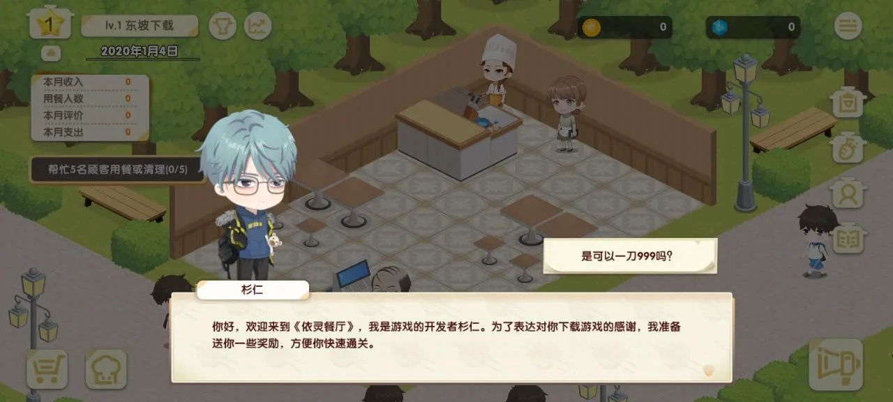 依灵餐厅是一款模拟经营单机游戏,玩家扮演餐厅老板,在公园旁经营餐厅。要雇佣员工、管理财务、研发菜谱、服务顾客。有独特场景、丰富剧情、多样策略,还能定制餐厅、解锁新内容,玩法丰富有趣。