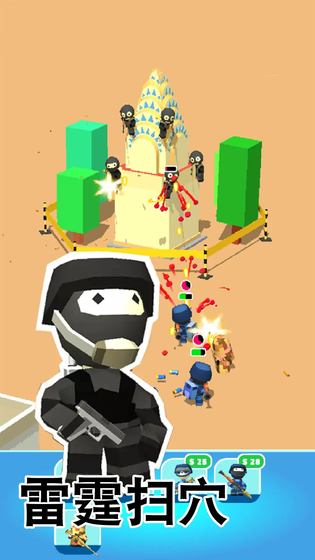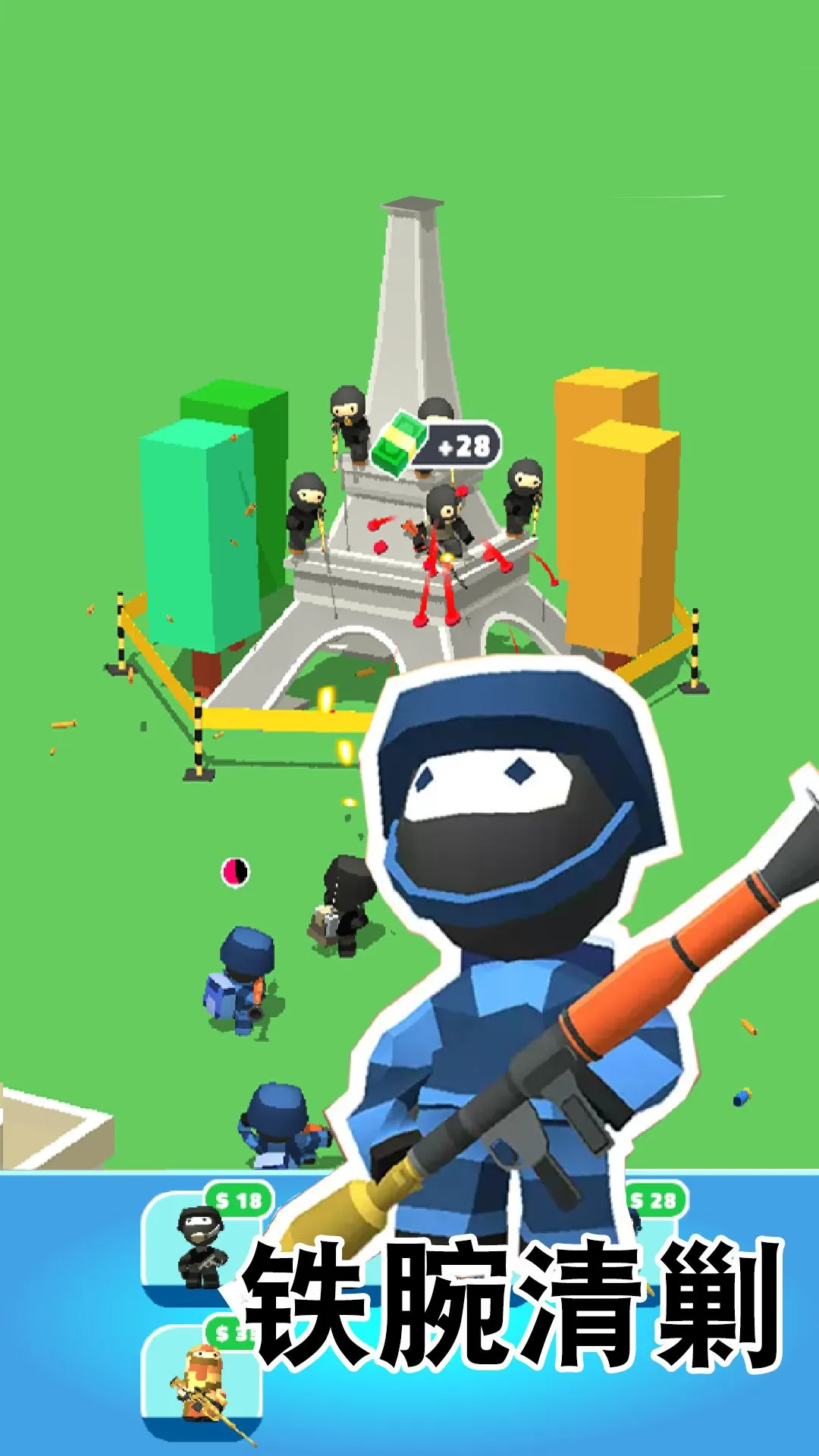 这是一款融合放置玩法与反恐题材的塔防策略游戏。玩家化身为精锐掷弹兵,在世界各地标志性建筑的战场中作战。游戏场景丰富,从高耸铁塔到复杂楼宇,充满挑战。其采用简约 3D 画面,线条利落勾勒出危机战场,细节暗藏战术玄机。玩法上,玩家要操控掷弹兵精准投掷武器消灭恐怖分子,合理调配兵力守护关键区域。通过完成任务解锁新武器与角色,提升作战能力。游戏将放置玩法与反恐巧妙结合,无需实时操作,兼顾策略与休闲。玩家能在守护区域消灭敌人的过程中,感受运筹帷幄的成就感,是一款老少皆宜值得一试的游戏。