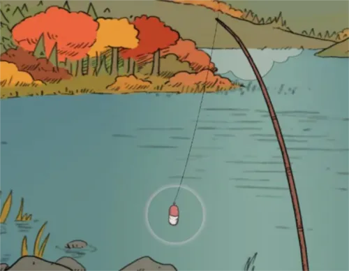 6、在浮标周围出现光圈的时候,就表示有东西上钩了,这个时候点击浮标就可以把东西钓起来,可能是鱼,也可能是破靴子。