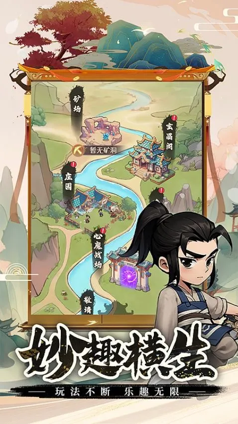 这是一款武侠主题的策略卡牌游戏,玩家将扮演初入江湖的侠士,历经重重劫难,寻找并学习各种神功秘籍。游戏以挂机闯关为核心玩法,玩家可以自由挑选武侠人物,习得华丽招式,开启畅快战斗。