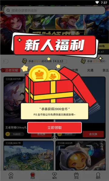 丰富多样的福利活动:玩家可通过参与活动兑换游戏福利,如海量福利活动、1金币秒杀、集卡挖矿等,还有大量限定皮肤英雄礼包、高级账号、王者赛季进阶卡等,奖励丰厚。
